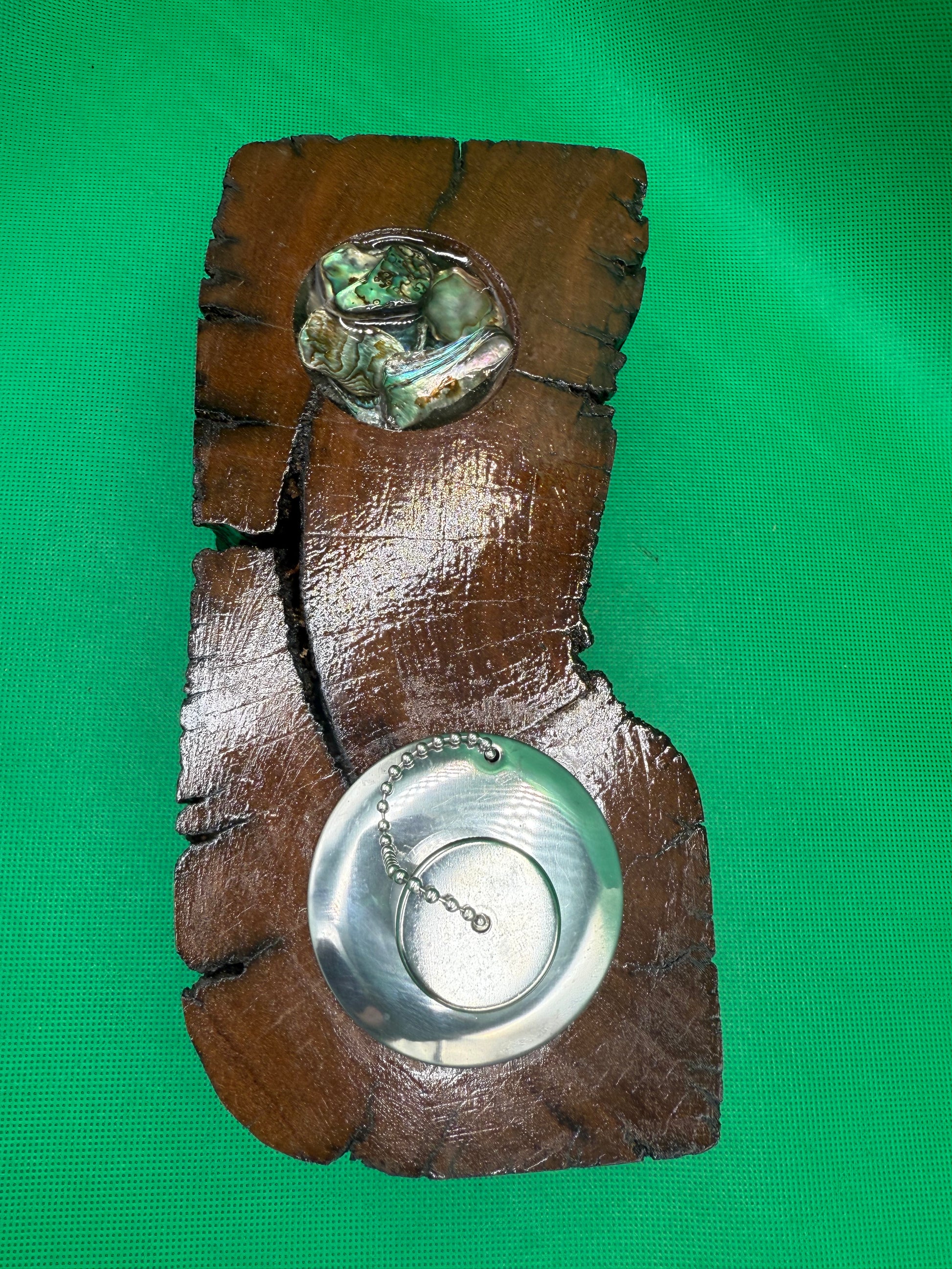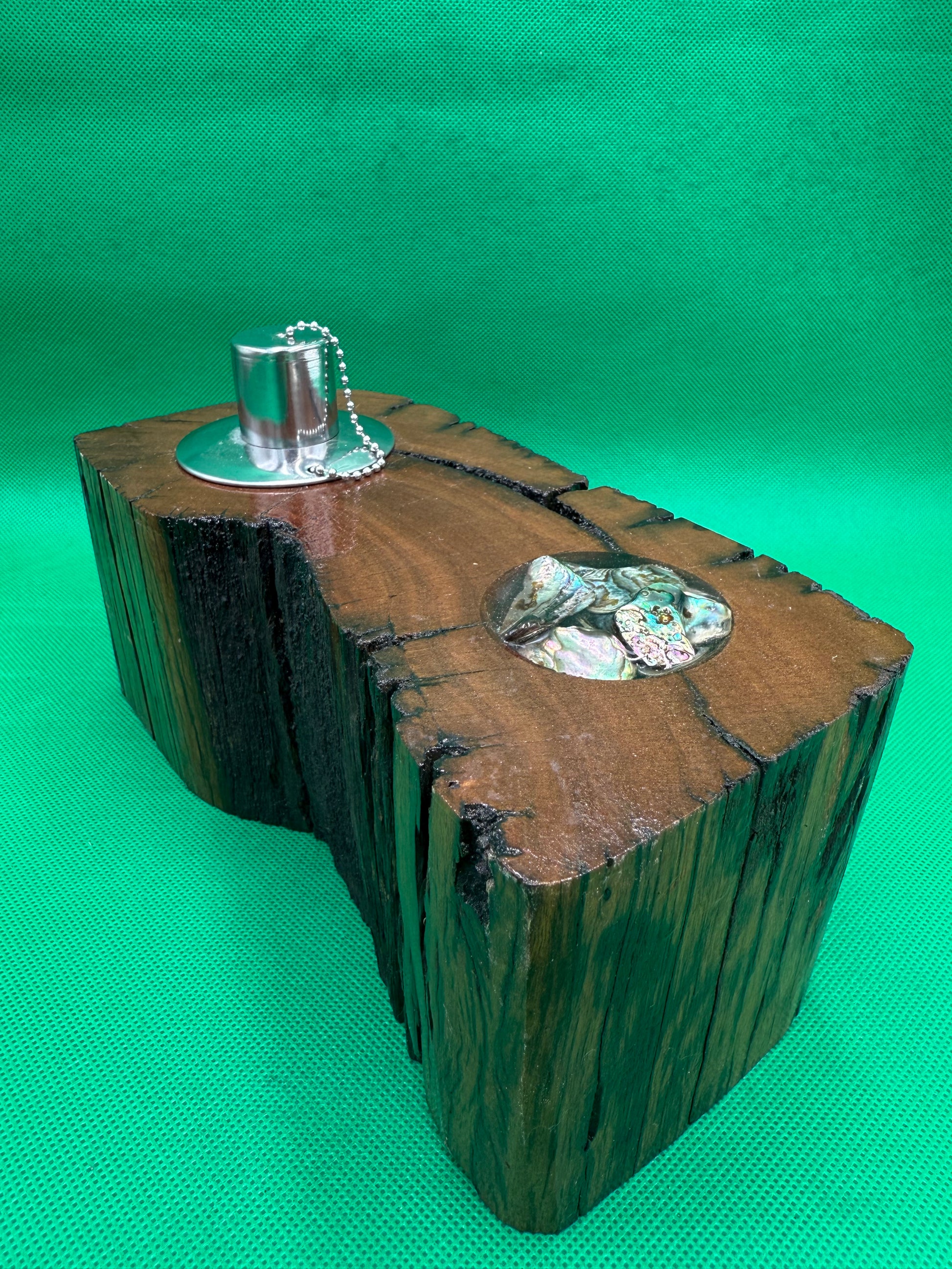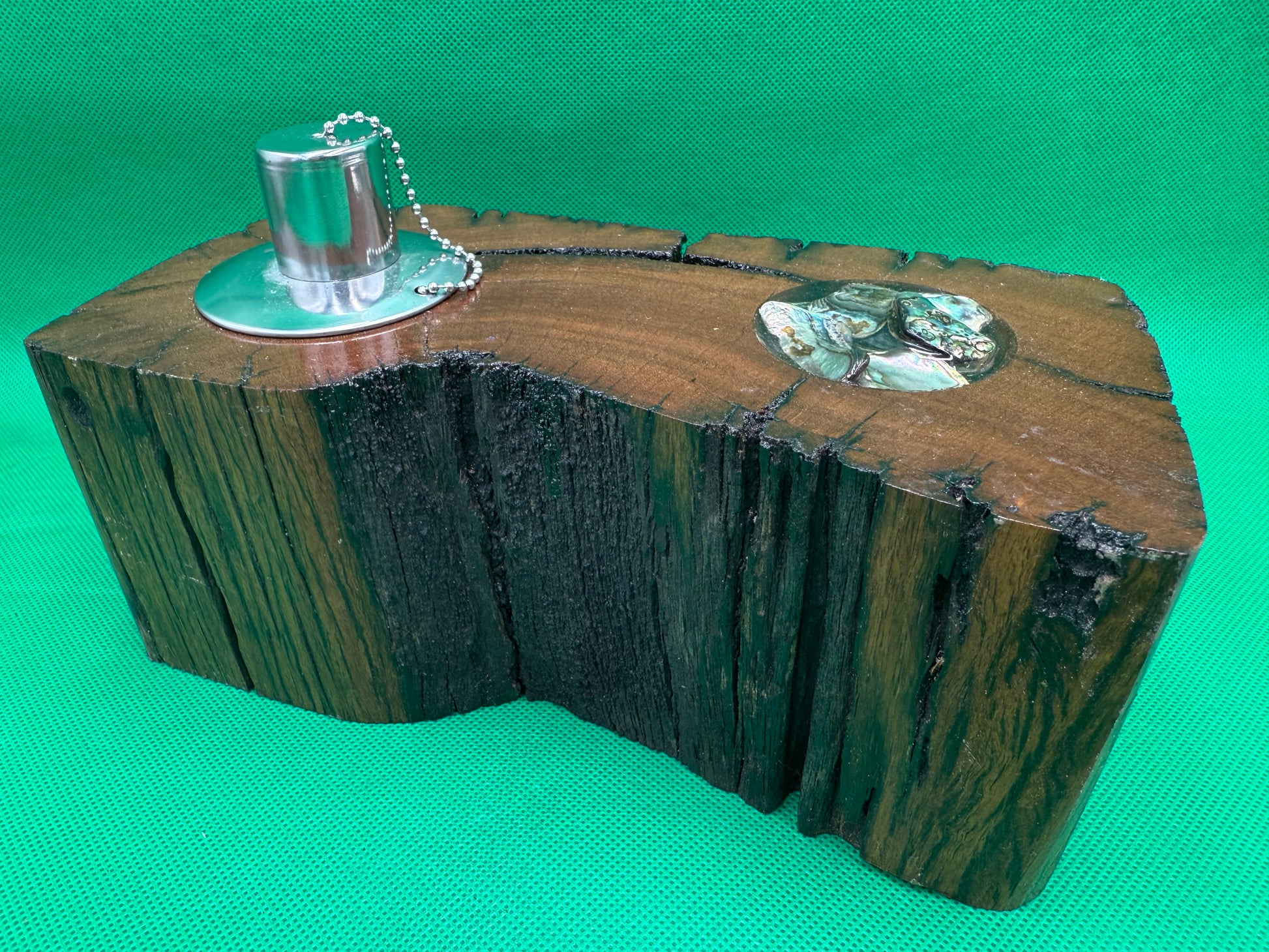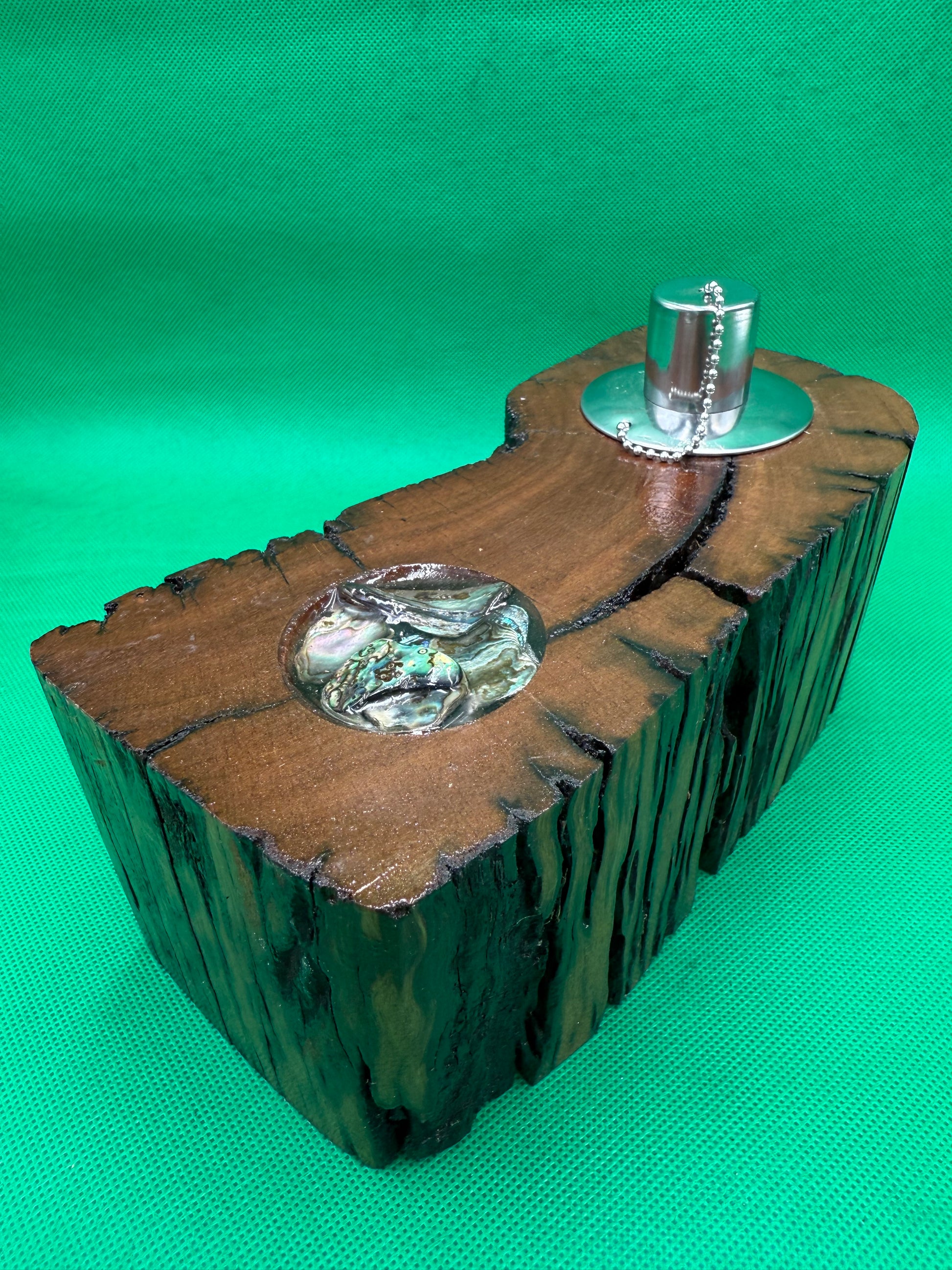 Inlaid into the wood is a selection of Paua/Abalone shell to add to the ambiance of this product