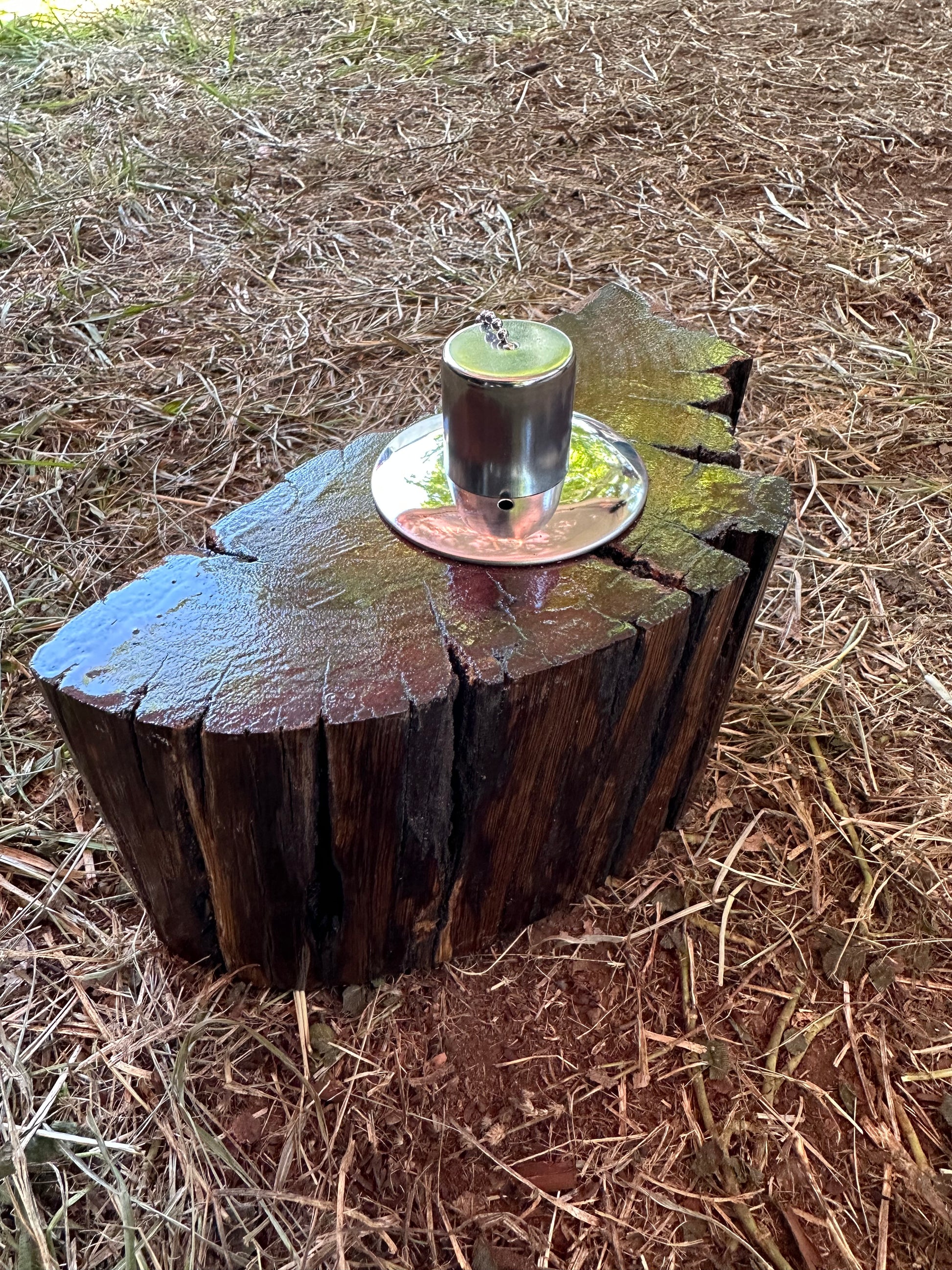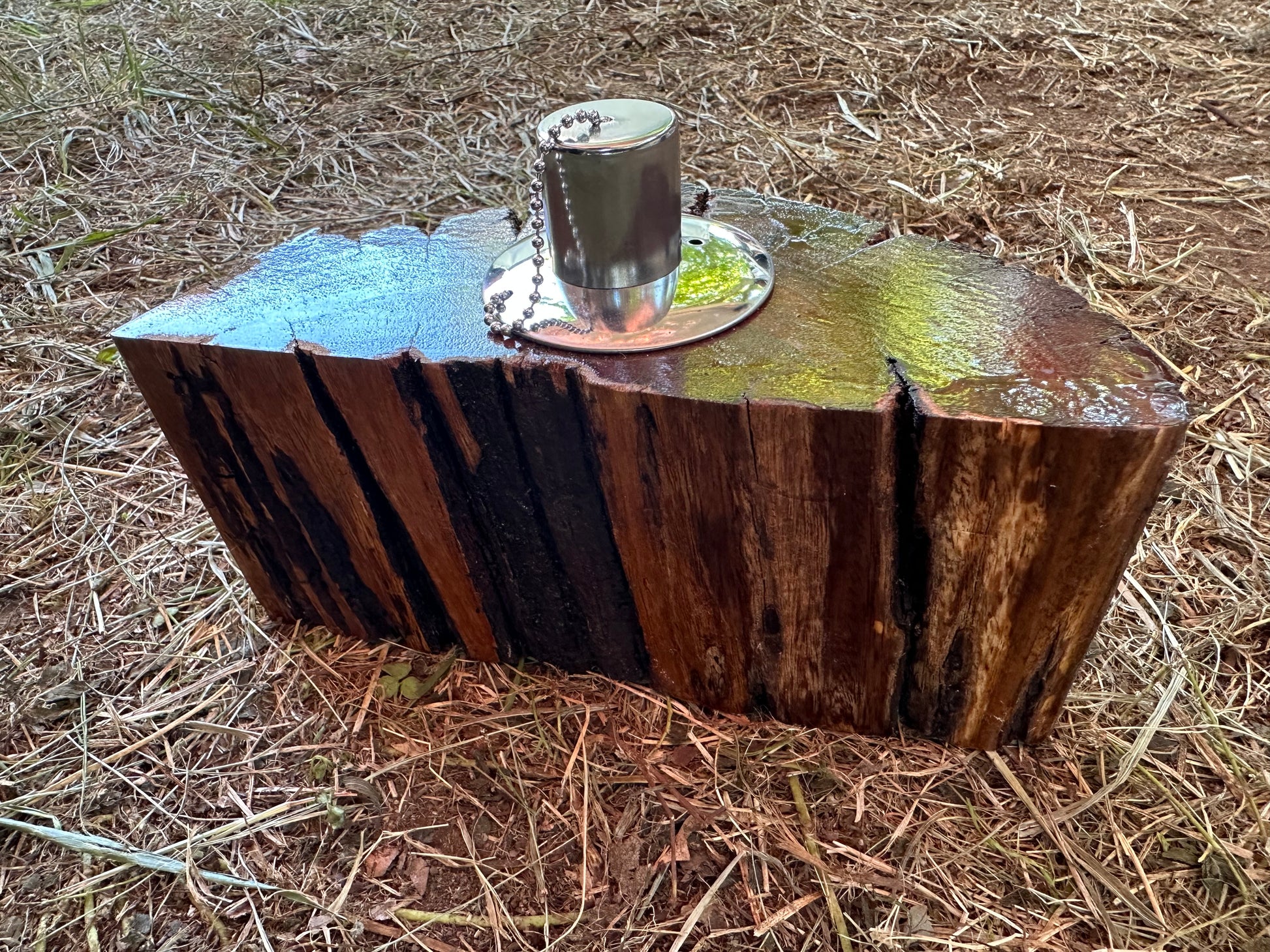 Recycled Wooden insect Oil burner manufactured in Australia using sustainable materials including quality stainless steel burners and sealed with a marine grade varnish.