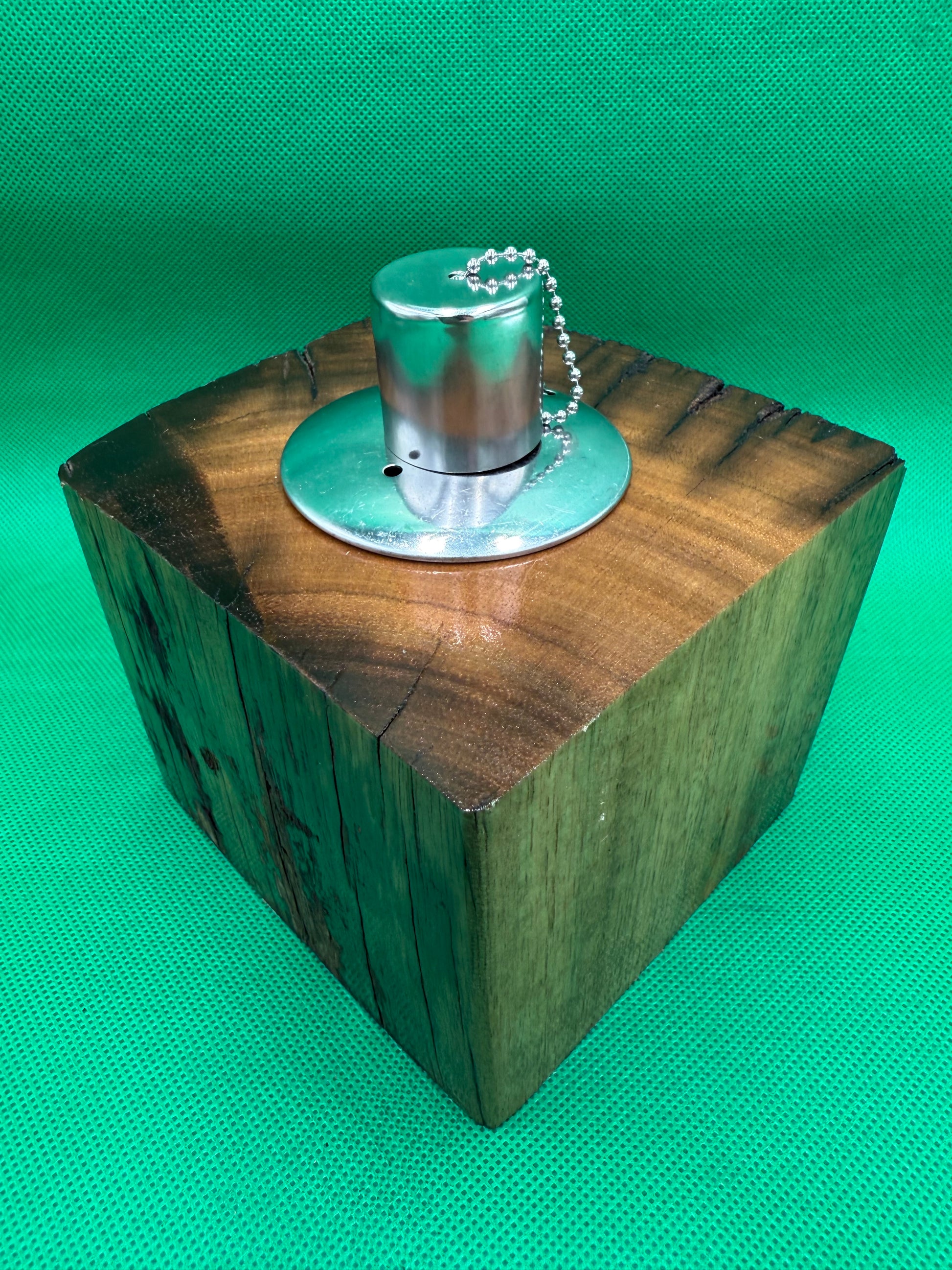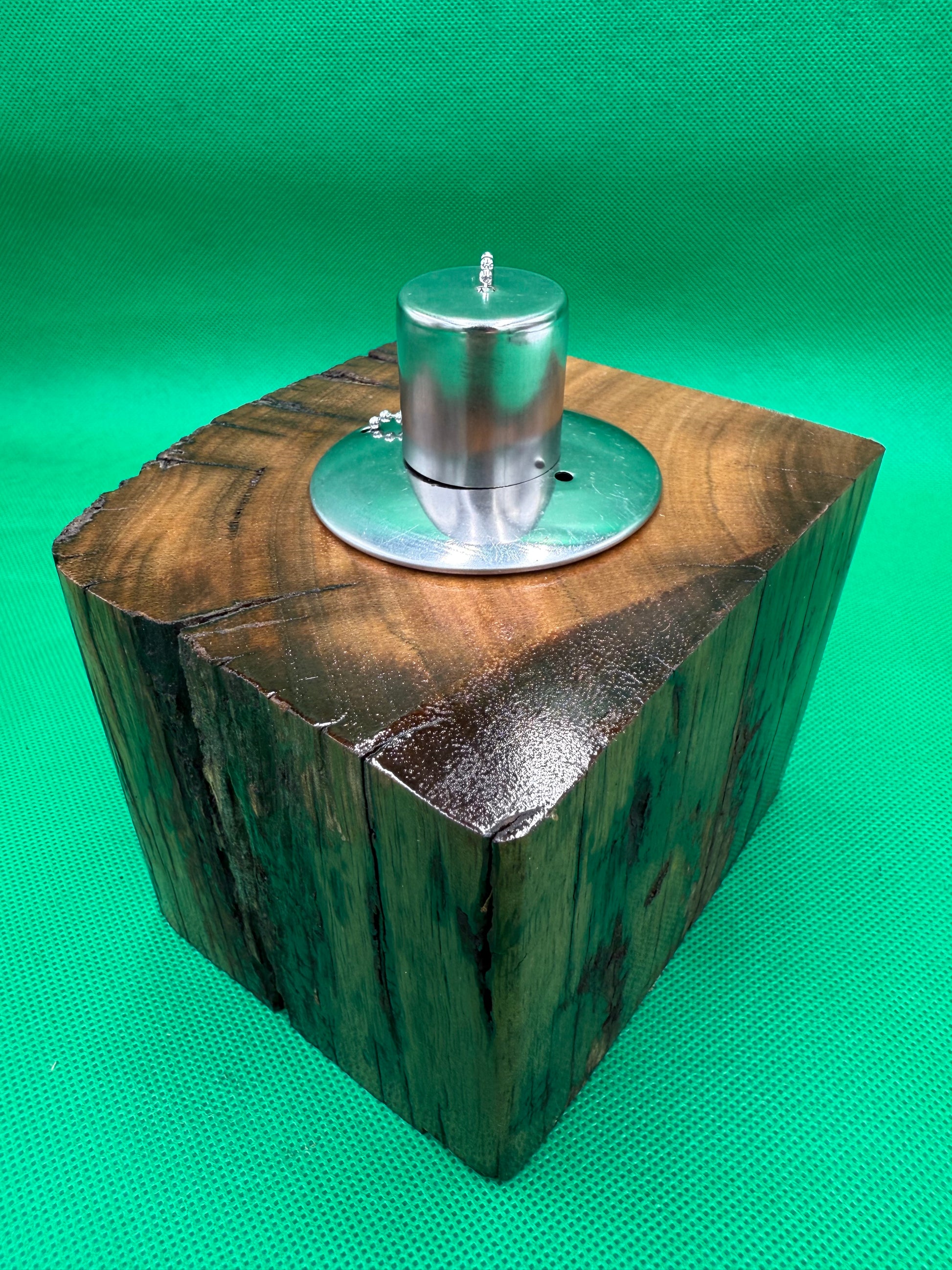 Recycled Wooden insect Oil burner manufactured in Australia using sustainable materials including quality stainless steel burners and sealed with a marine grade varnish.