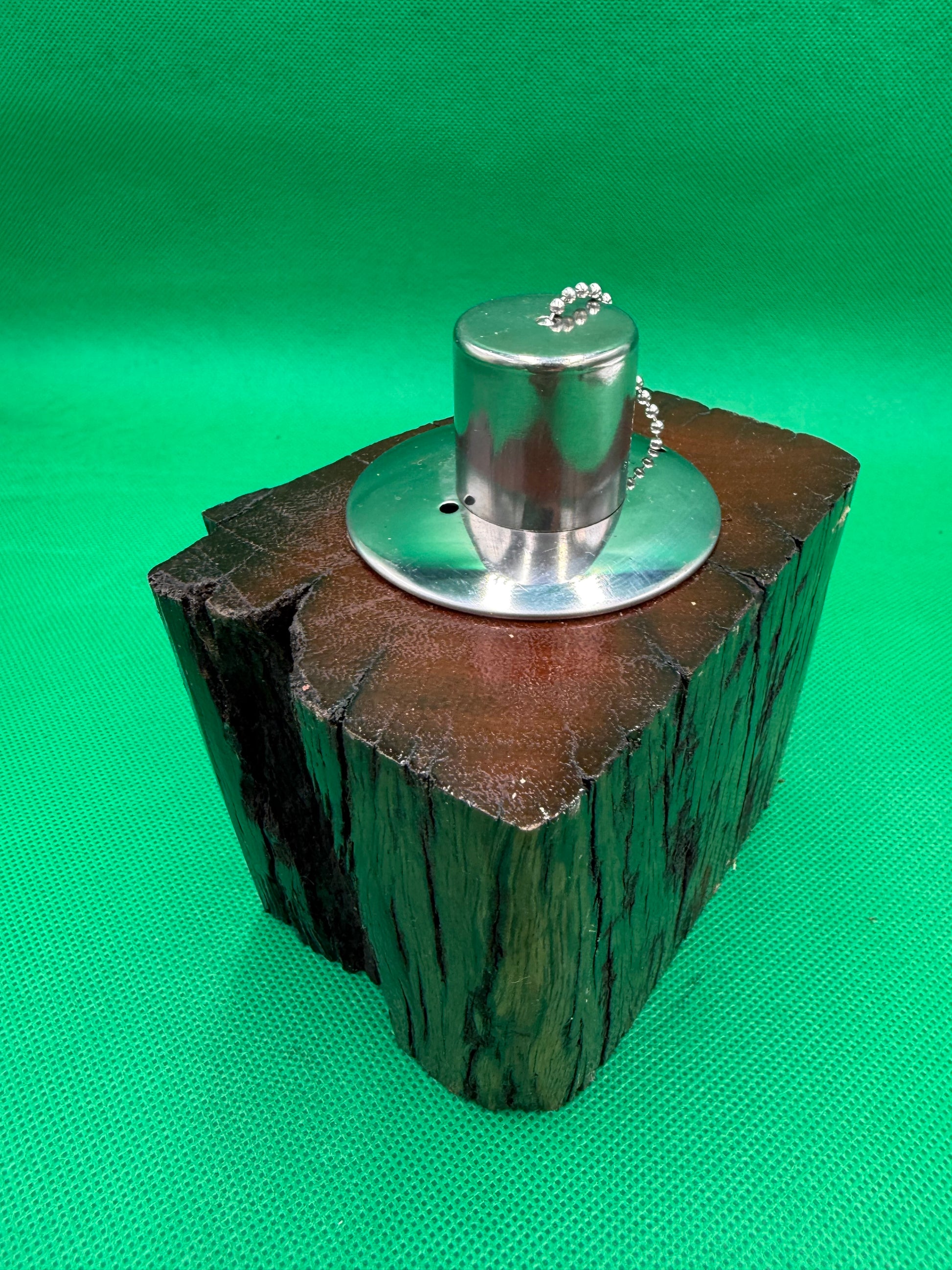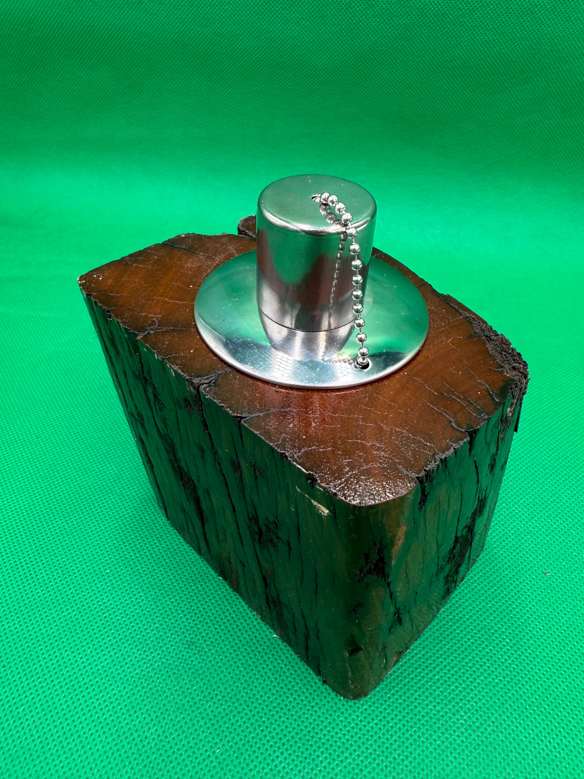 Recycled Wooden insect Oil burner manufactured in Australia using sustainable materials including quality stainless steel burners and sealed with a marine grade varnish.