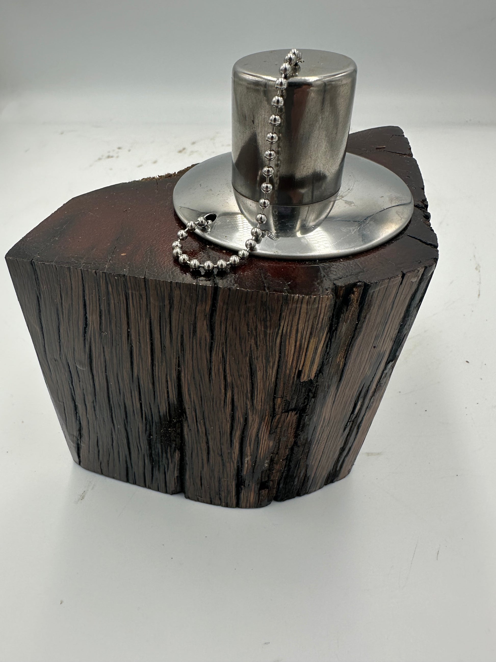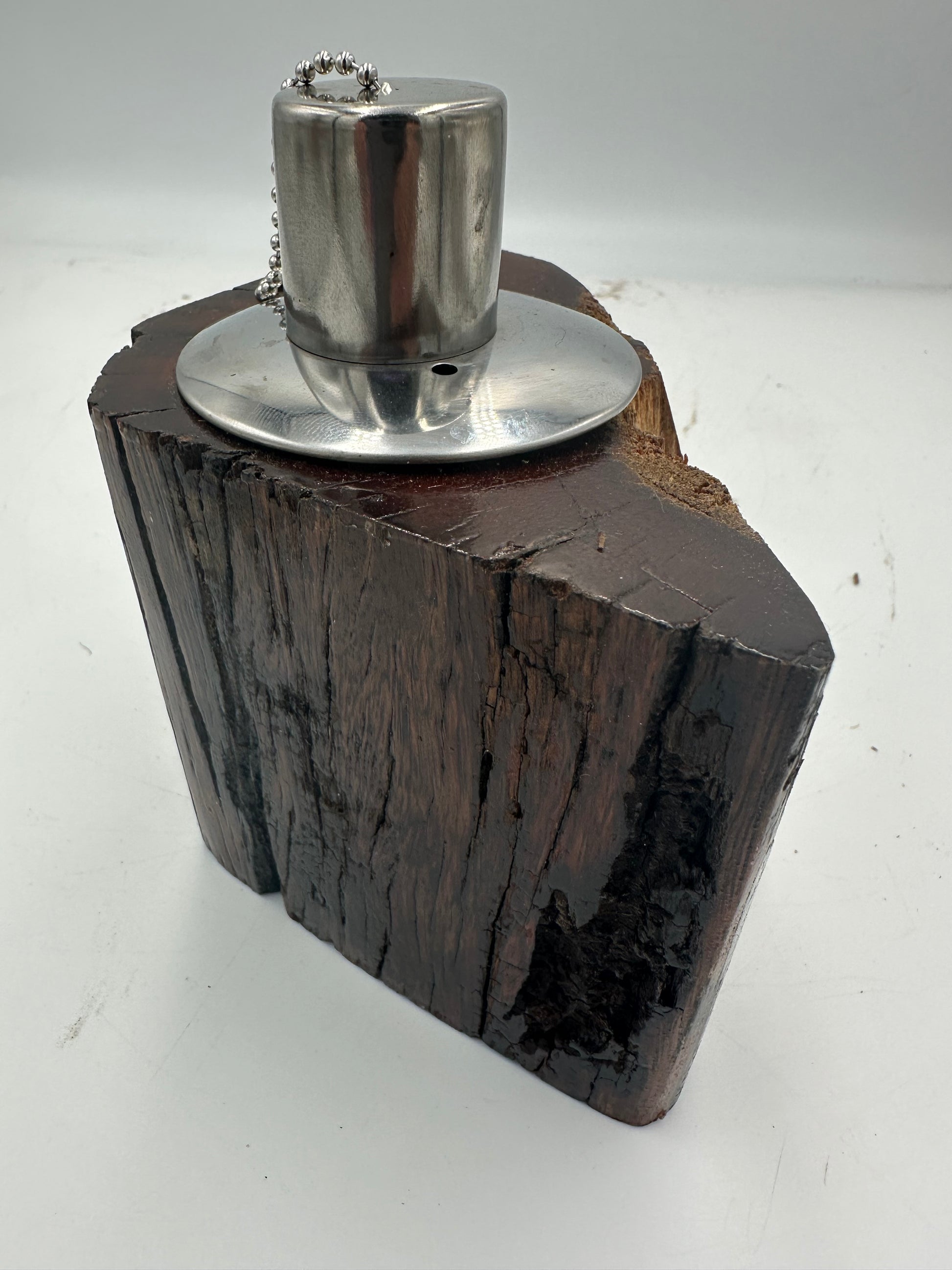Recycled Wooden insect Oil burner manufactured in Australia using sustainable materials including quality stainless steel burners and sealed with a marine grade varnish.