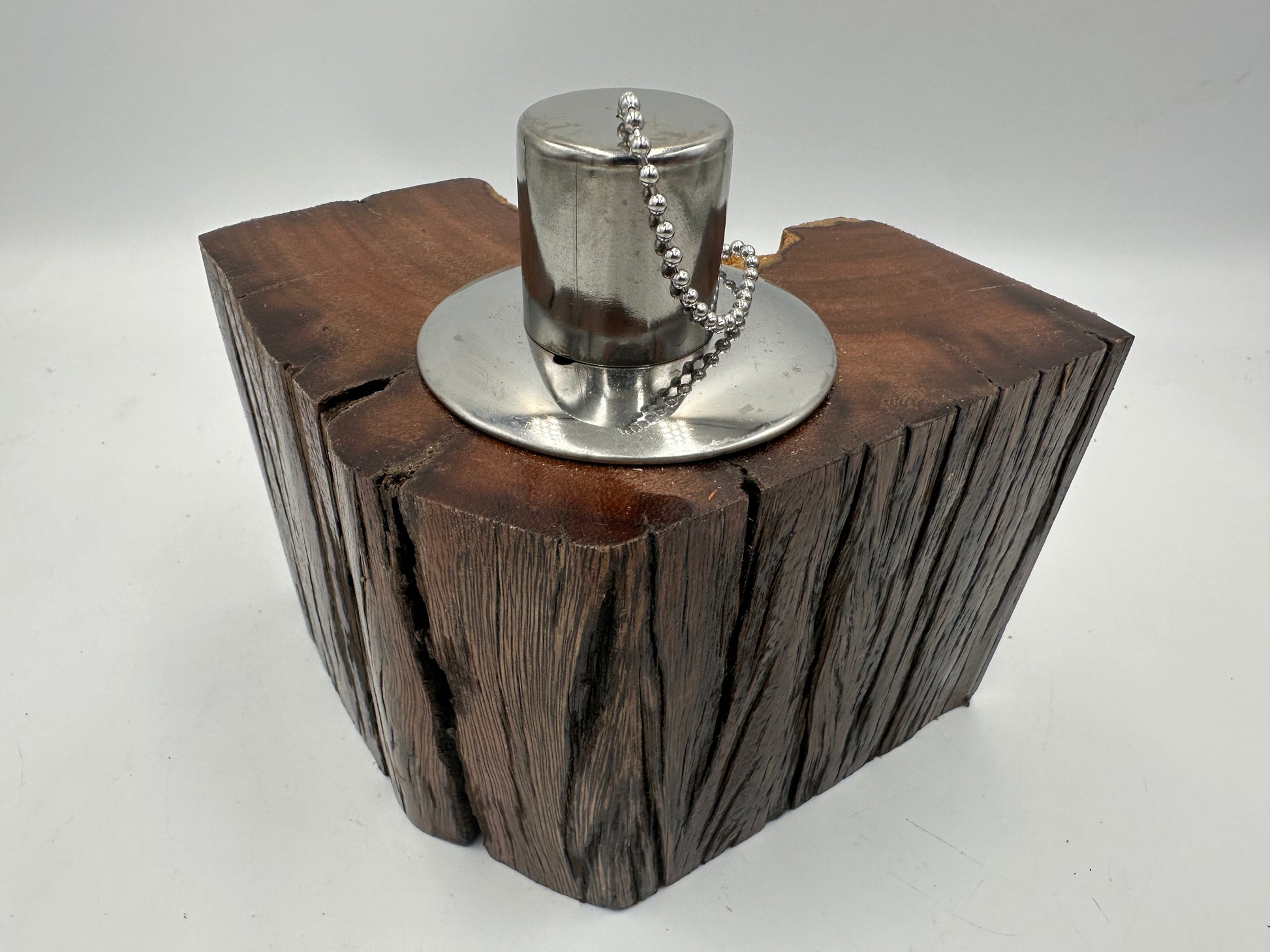 Recycled Wooden insect Oil burner manufactured in Australia using sustainable materials including quality stainless steel burners and sealed with a marine grade varnish.