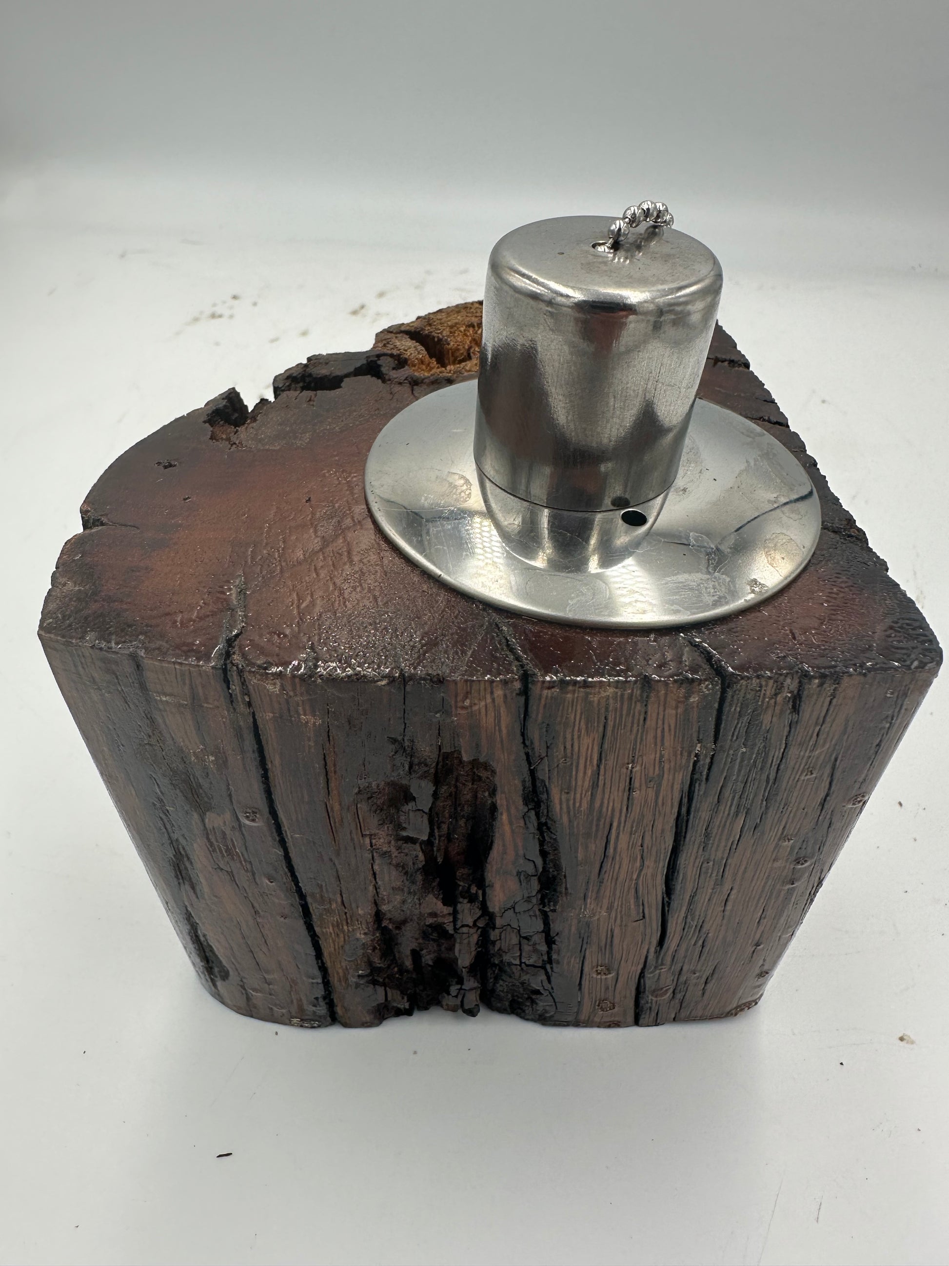 Recycled Wooden insect Oil burner manufactured in Australia using sustainable materials including quality stainless steel burners and sealed with a marine grade varnish.